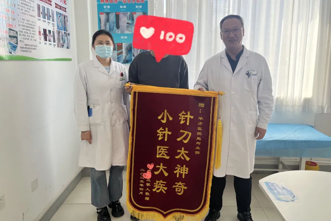 王先生特意帶著錦旗來(lái)到華方醫(yī)院,親手交到趙剛主任手中。“感謝趙主任,讓我重新挺直了腰板!”錦旗上的金色大字,承載著患者最真摯的謝意。